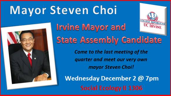 Our guest this week is Steven Choi. Mr. Choi is the incumbent mayor of Irvine and is also a candidate for the 63rd Assembly District, currently occupied by termed out Assemblyman Don Wagner. After serving in the Irvine City Council for eight years, Steven Choi finally became mayor in 2012. For more information about Steven Choi and his campaign, please visit http://stevenchoi.org.