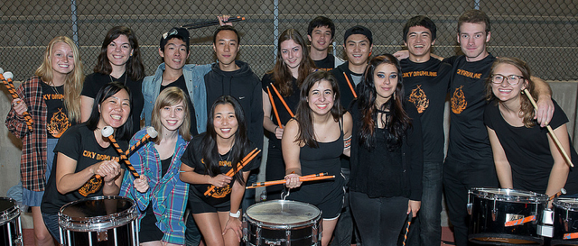 The Oxy Drumline! strives to amplify school spirit via music at campus events. Oxy Drumline! provides musical opportunity to students of all skill levels.